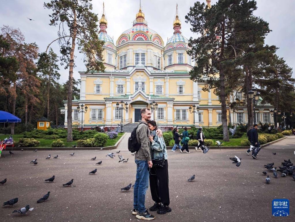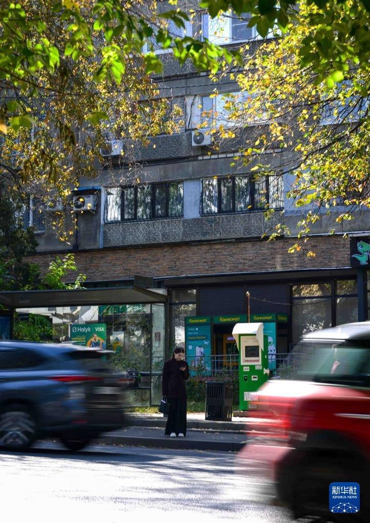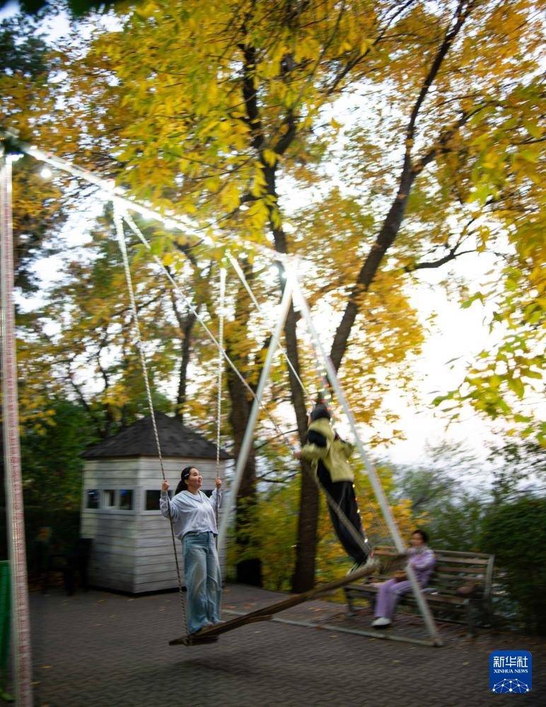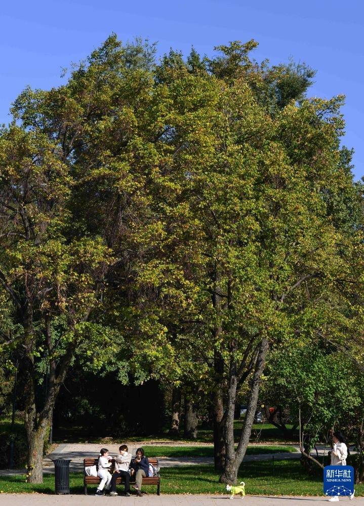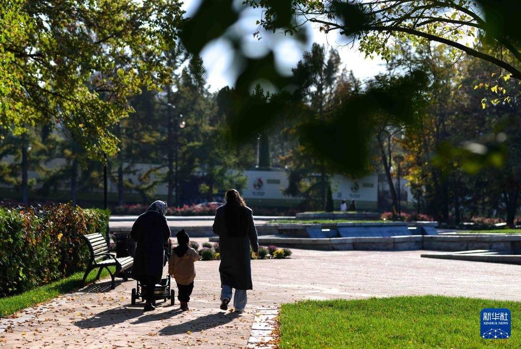 r进入秋季,哈萨克斯坦第一大城市阿拉木图秋高气爽,许多市民来到户外享受秋日。