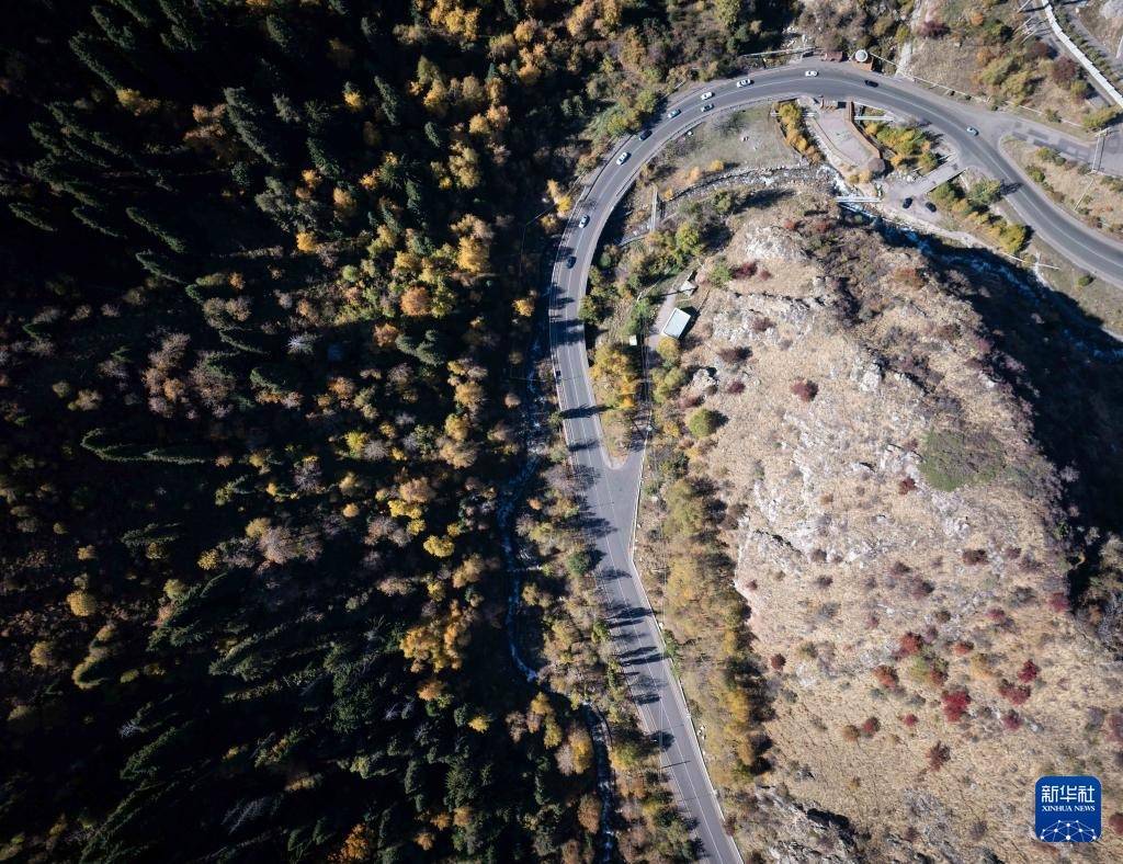 r这是10月6日在哈萨克斯坦阿拉木图市郊拍摄的山区风光(无人机照片)。